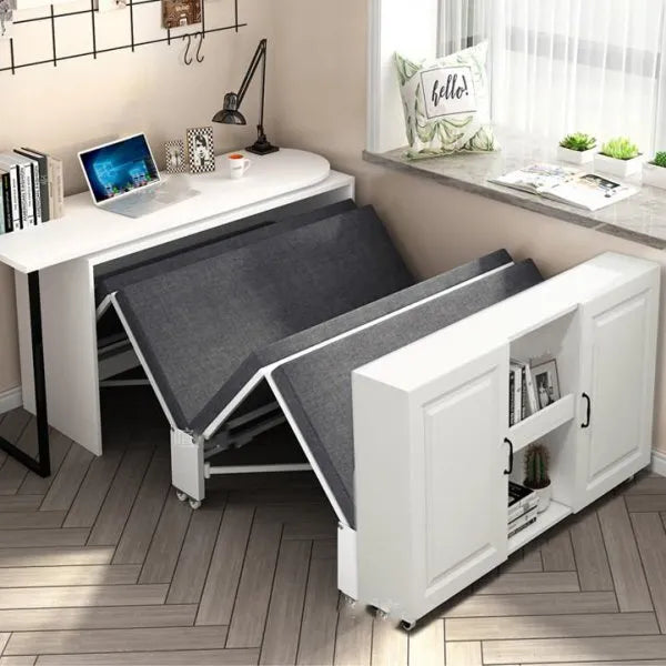 - Folding bed + rotating desk, a set of furniture for office and rest. Can be easily transformed into a bedroom. The folding bed hidden in the desk can be transformed with a single pull.