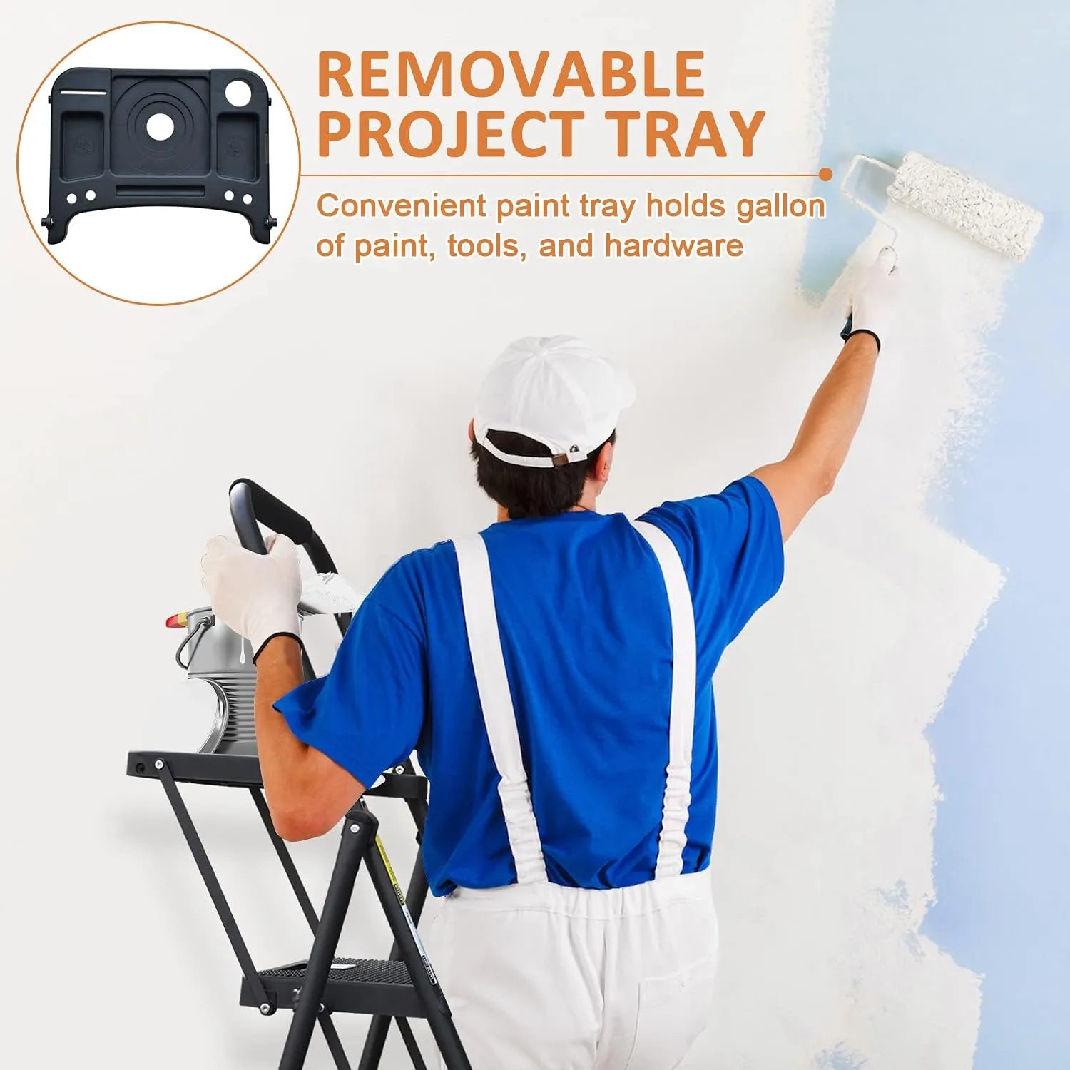 3 Step Ladder, Folding Step Stool with Wide Anti-Slip Pedal, 500lbs Sturdy Steel Ladder, Convenient Handgrip, Lightweight, Portable Steel Step Stool, Black
