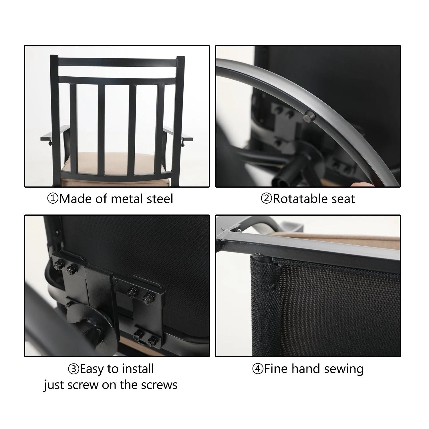 5-Piece Patio Fire Pit Set Steel Swivel Chairs With Cushions & 50,000BTU Square Fire Pit Table