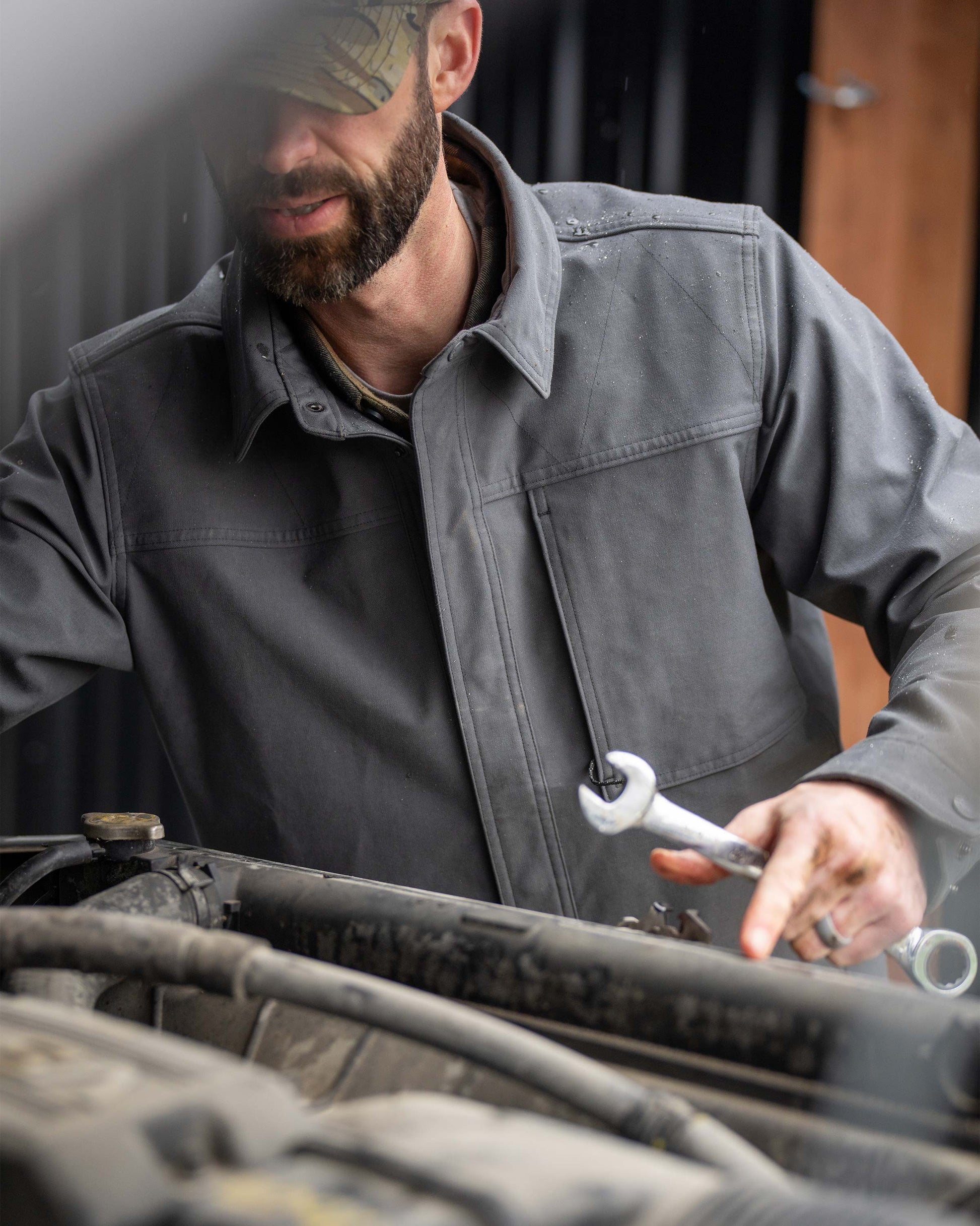 Spec’d with a premium Toray® 4-way stretch canvas, this highly durable workgrade jacket is built to take on any project or trade. Features include a double panel overlay across the elbows for added strength, a durable water-resistant treatment, and functional pocketing for your everyday carry items. It’s ideal as a heavy-duty work jacket or for everyday wear when added durability is required.