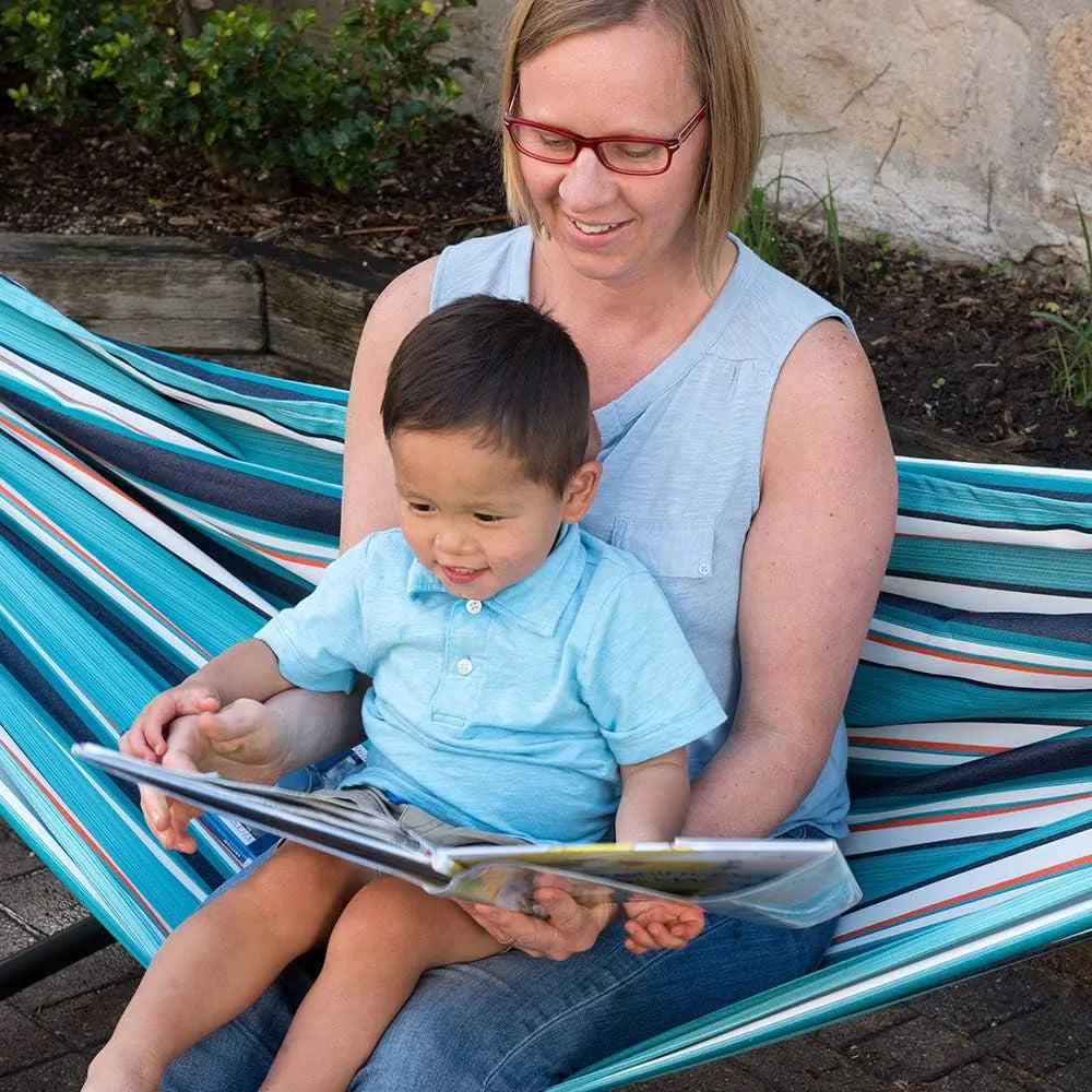 - combo, the double hammock with stand and carry bag is our top choice for combos. The double hammock is tightly woven with high quality cotton thread resulting in a heavy, durable fabric.