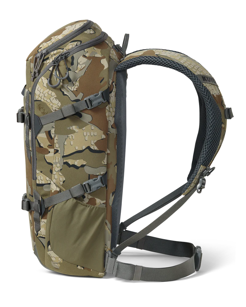 The soft-brushed Encounter material is ultra-quiet to avoid spooking deer on still mornings and rugged enough for tough outdoor conditions. A structured, breathable, foam-backed back panel and shoulder straps ensure comfort to and from the stand, while an adjustable tree connection strap lets you hang the pack silently, keeping your stand clutter-free.