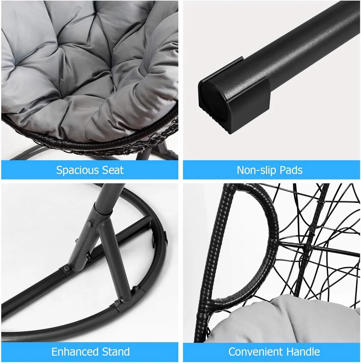 - Indoor/Outdoor Use: The swing chair is designed for both indoor and outdoor use. Unique egg-shape appearance blends with the surrounding environment better and adds a special leisure feeling. ❤️❤️❤️Please kindly note: This hammock stand and hammock chair set will be shipped in 2 boxes.❤️❤️❤️