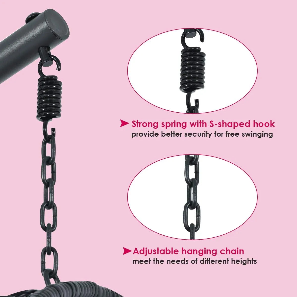 - Great Balance & Enjoy Leisure Time: Safety hook, durable hanging chain and strengthened frame ensure the great balance. Besides, the chair is secured with a strap for safety. You can spend joyful swinging time with its powerful function. Enjoy the panoramic day sitting in the chair.