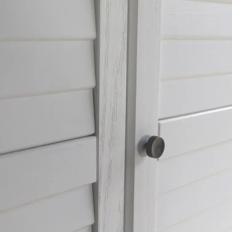 This coastal-looking armoire has what it takes to give your bedroom that refined touch. Its modernized traditional style creates a timeless design while adding lots of storage with 3 large Louvered doors and two spacious 8 1/4?deep drawers. Made of 100% solid pine wood, this customizable wardrobe features a sturdy construction that can last for years.