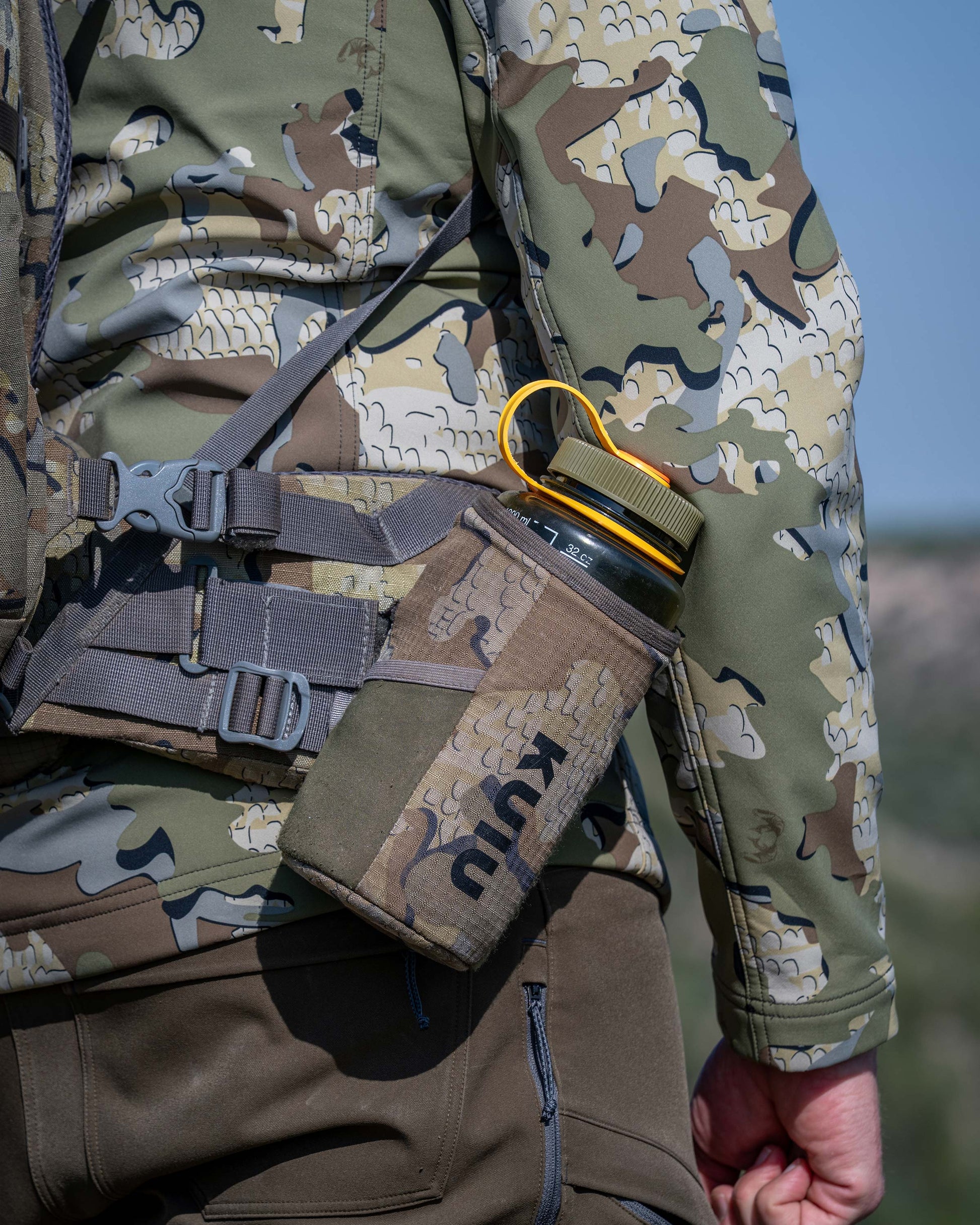 The structured holder allows simple in-and-out, one-hand function, yet holds the bottle secure while navigating difficult or brushy terrain. For added convenience, the exterior of the holder features durable stretch fabric pockets for stowing drink mix packets or other small items. Combining an innovative yet simple design with premium CORDURA® Ripstop materials, you get best-in-class hydration accessibility.