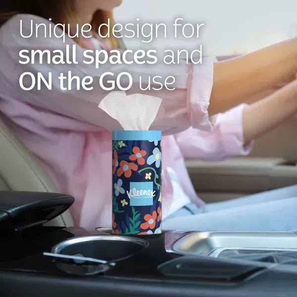 Life’s little messes can come up anywhere – even in your car! With Kleenex Perfect Fit Facial Tissues, you get 4 boxes of 50 tissues, so you have plenty of car tissues for any occasion. Designed for runny noses and watery eyes, America’s softest everyday tissue among national brands features soft, durable, thick 2-layer facial tissues in a convenient travel pack, so each container fits perfectly in car, truck or SUV cup holders. Plus, you can find a round tissue box that fits the occasion because each tissue canister is available in various colors and designs. Got the sniffles? Help soothe that runny nose by trying a box of Kleenex Soothing Lotion or Kleenex Ultra Soft facial tissues.