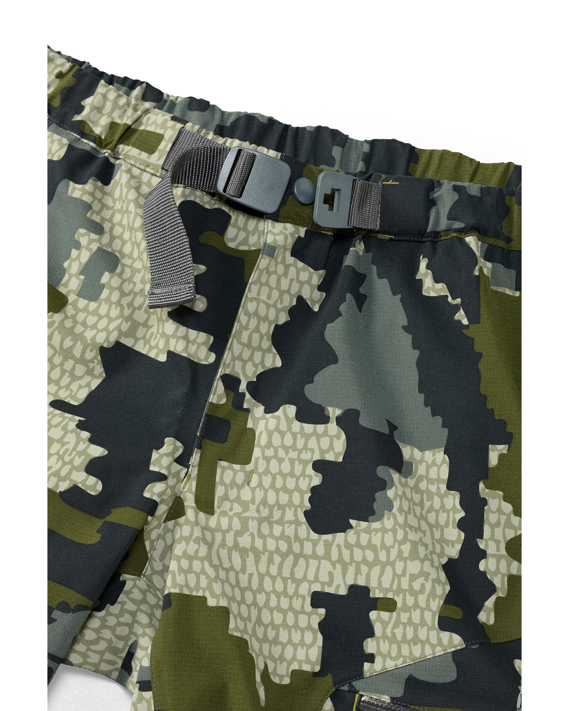 If you're preparing for a tough hunt that's wet and brush-choked, you need protection from a rain gear system that's durable, lightweight, and dries quickly. The Kutana Storm Shell Pant features an entirely new microporous hydrophobic membrane from Toray that breathes even when activity level is minimal, and absorbs very little water for incredibly fast dry times. The durable stretch nylon 6/6 face fabric offers great tear strength for its weight, and will stay dry longer due to a new, more durable K-DWR treatment. The new Torain 3-layer construction from Toray adds a revolutionary new seam tape that, along with the membrane, give enhanced hydrolysis resistance for significantly improved garment longevity. Designed with the features you need for all-day use, including cargo pockets, full-length leg zips, a built-in waist belt, and Bemis overlay film on the cuff for abrasion protection, the Kutana Storm Shell Pant furthers our never-ending goal of offering improved performance and durability at a lighter weight.