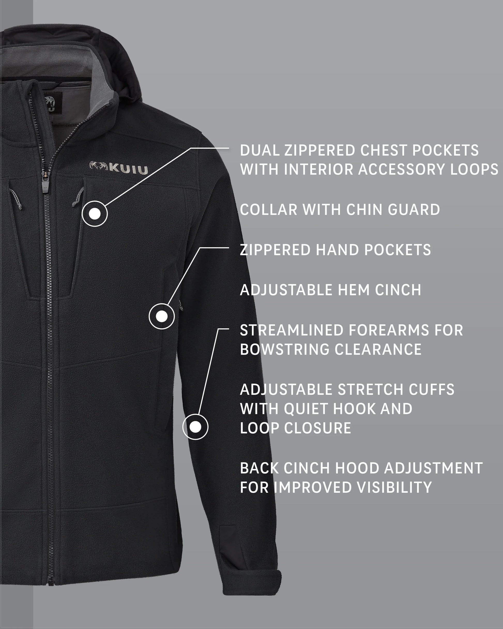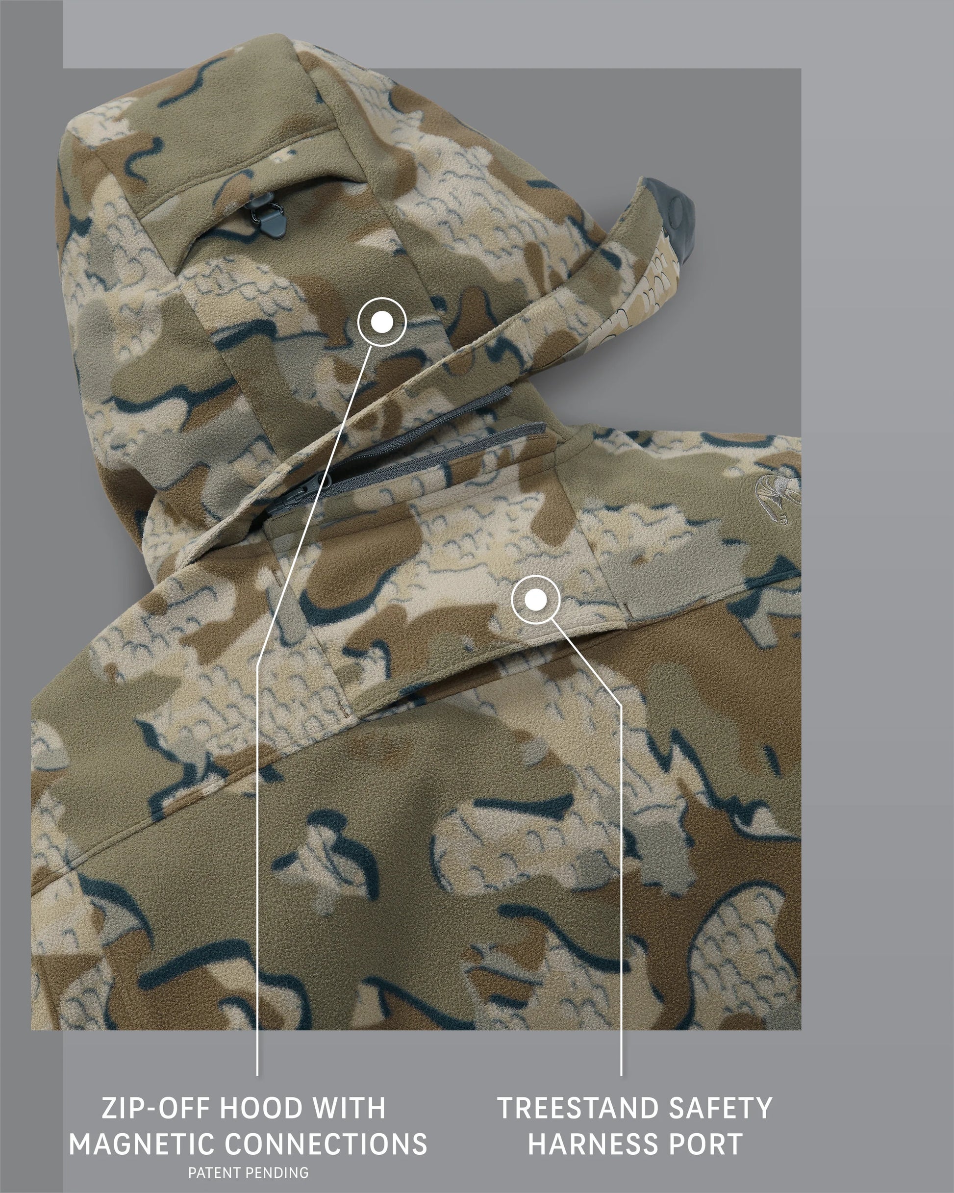 The Proximity LT is a versatile outer-layer windproof shell, uninsulated for ease of layering in mild to cold temperatures with bone-chilling wind. Engineered with purpose-driven features for stand hunting, it includes a patent-pending removable hood, safety harness port, and dual chest pockets with rangefinder connection points. Its articulated design, high-stretch fabric, and streamlined forearms allow you to shoot without interference or restricting mobility.