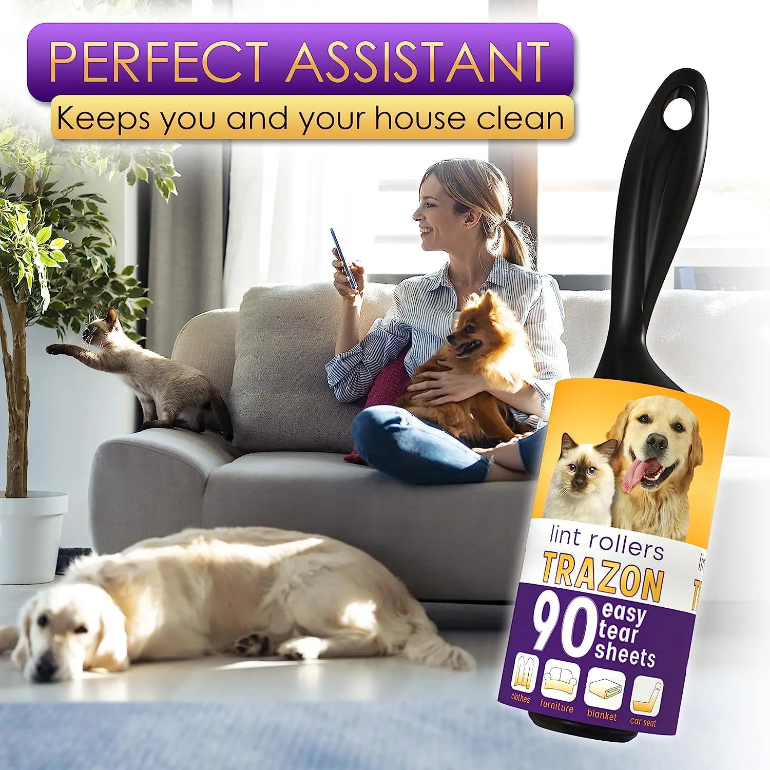 - Two convenient handles for a variety of uses. If you have a big family, you’ll find the pack with two lint rollers extremely useful. Keep them in two different rooms to ensure all fam members can use them when they want to. Besides, by making some space for the lint roller in the glove box of your car, you contribute to the hair-free look of your jacket or suit for an important meeting. No matter where you keep it, our sticky lint roller will help you look irresistible.