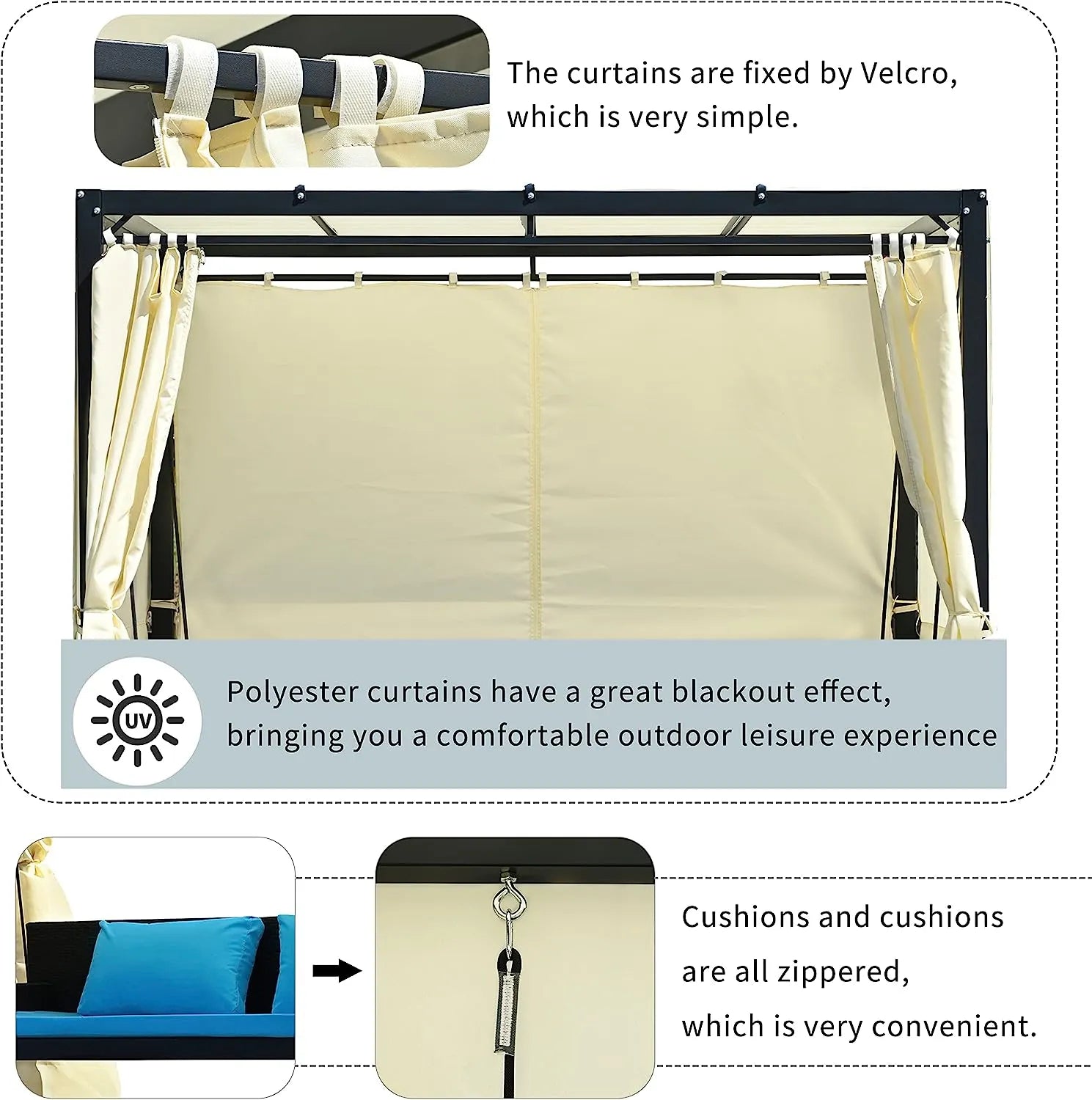 - 【ADJUSTABLE CANOPY】 Our canopy porch swing has adjustable Curtains that can be adjusted freely. The canopy design for sunshade and rain protection, against the wind and rain and dust, protect against UV.