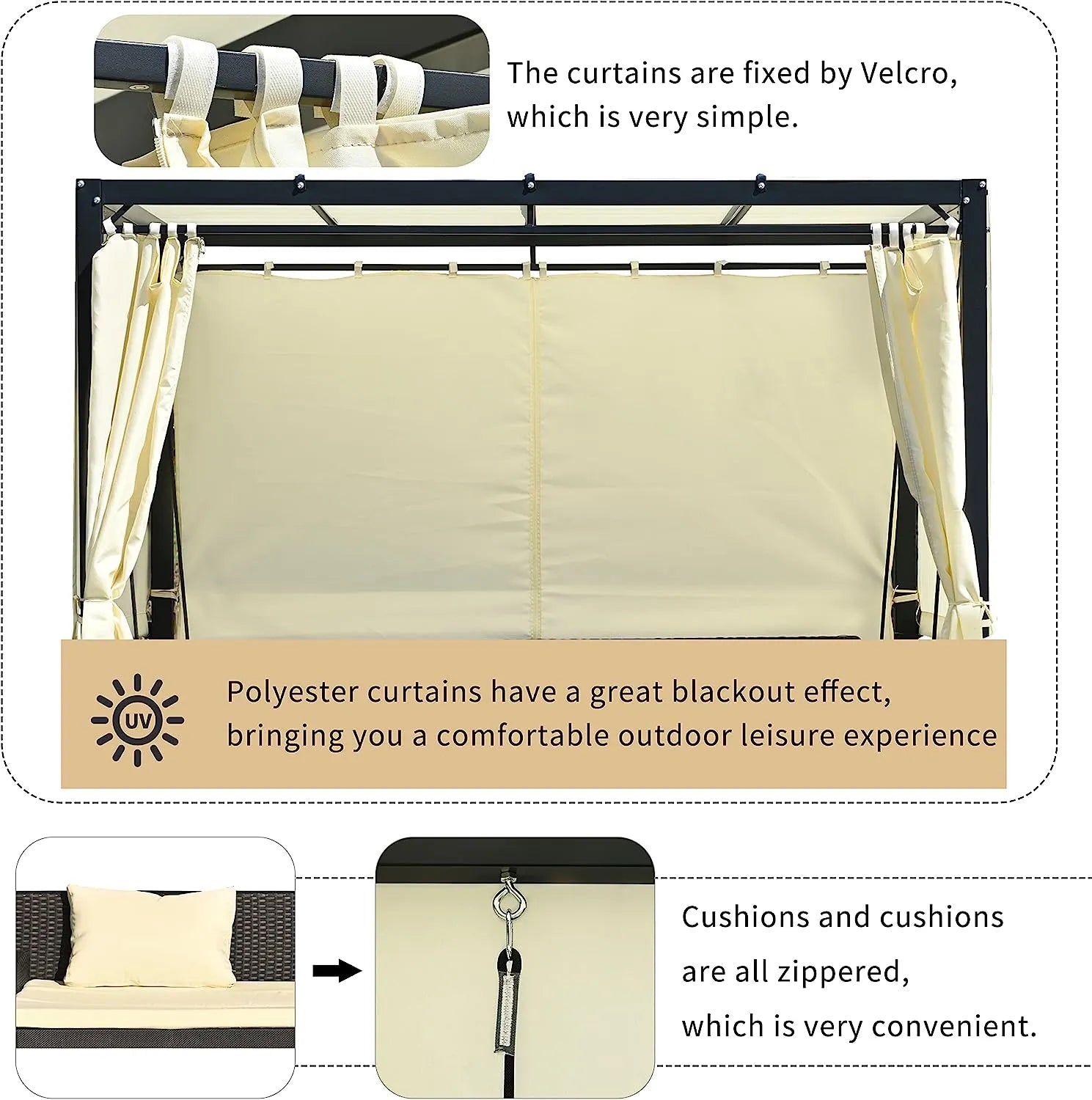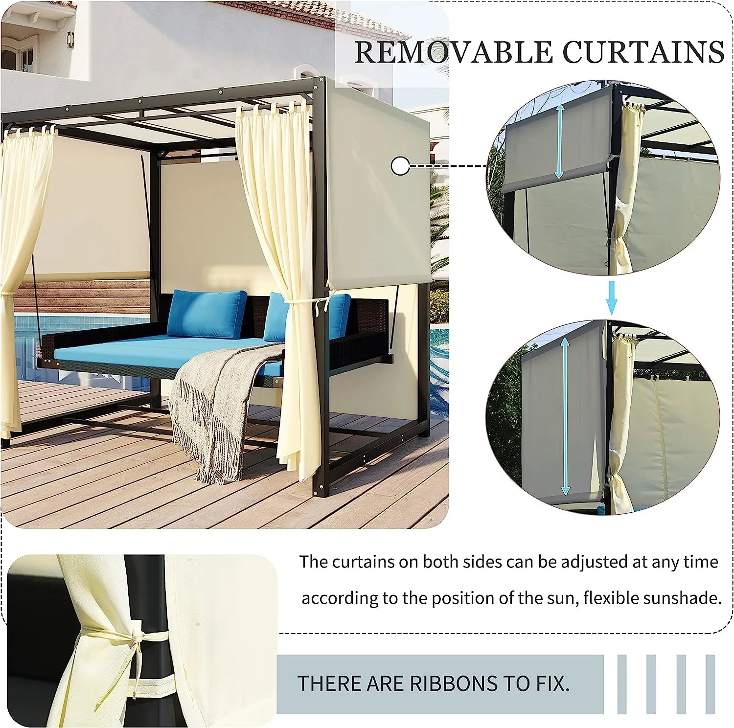 - 【ENOUGH SITTING SPACE】 This wicker garden patio furniture set includes 1 x patio swing bed, 1 x Gazebo . It can support up to 750lbs, comfortably swings up to 3 people. Ensuring a smooth, gentle swing experience.