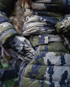 Unlike typical down insulation, that use a shiny face fabric, the Super Down LT features a dull, matte finish for improved concealment. Super Down LT’s fabric beads water and resists saturation thanks to the K-DWR water resistant treatment. The fabric takes on very little moisture and dries quickly after extreme use.