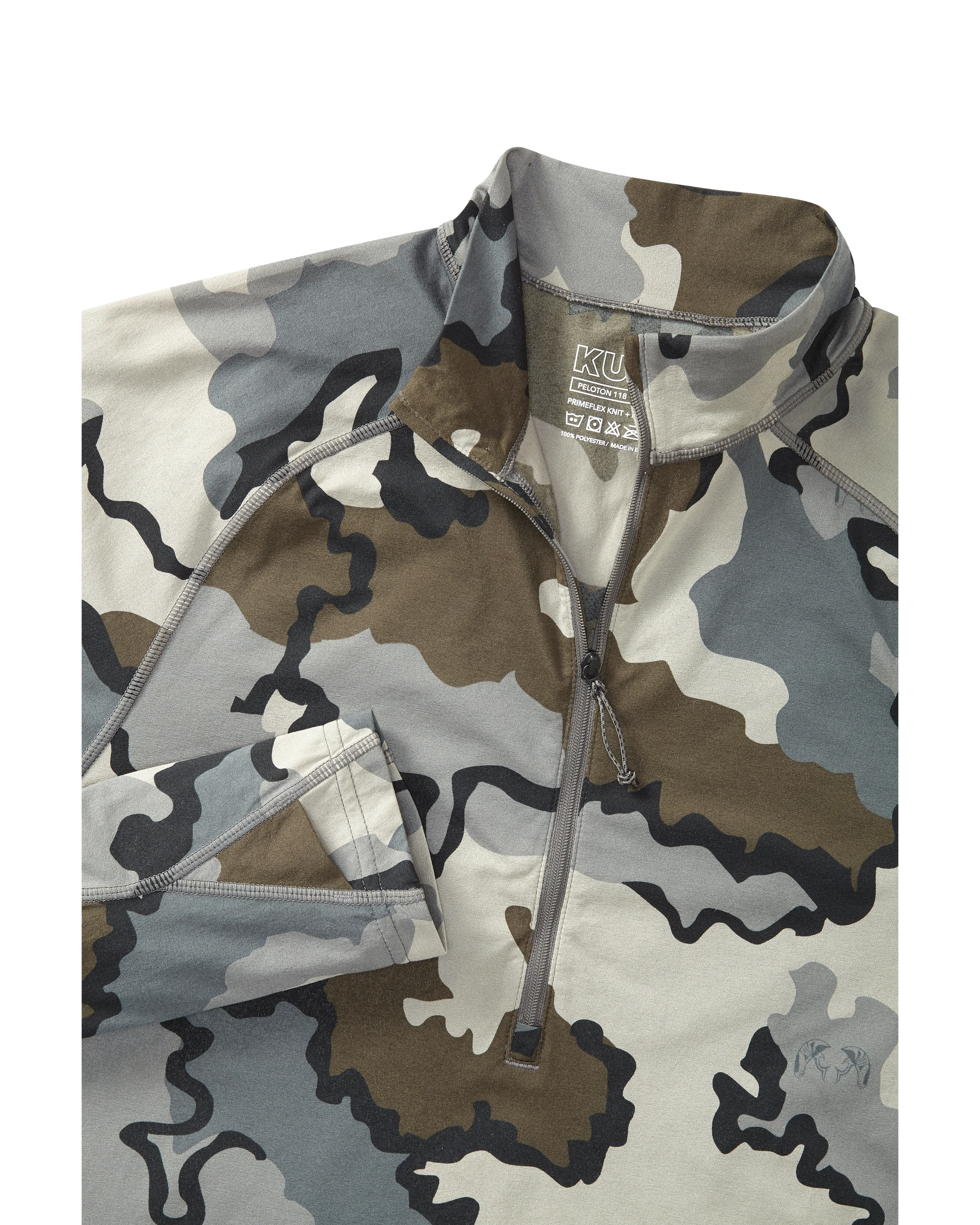 At KUIU we believe stretch without elastane (e.g. Spandex) is critical to performance and fit. Elastane or spandex fabrics are heavy, hold moisture, and lose shape over time. Constructed with Toray's patented Primeflex spiral yarn, the Peloton 118 Zip-T delivers the durability you expect from a synthetic, while still providing great stretch and recovery without elastane fibers. Our focus has been to partner with innovative fabric manufacturers such as Toray to offer fabrics that stretch through advanced fabric engineering, not the addition of elastomers.