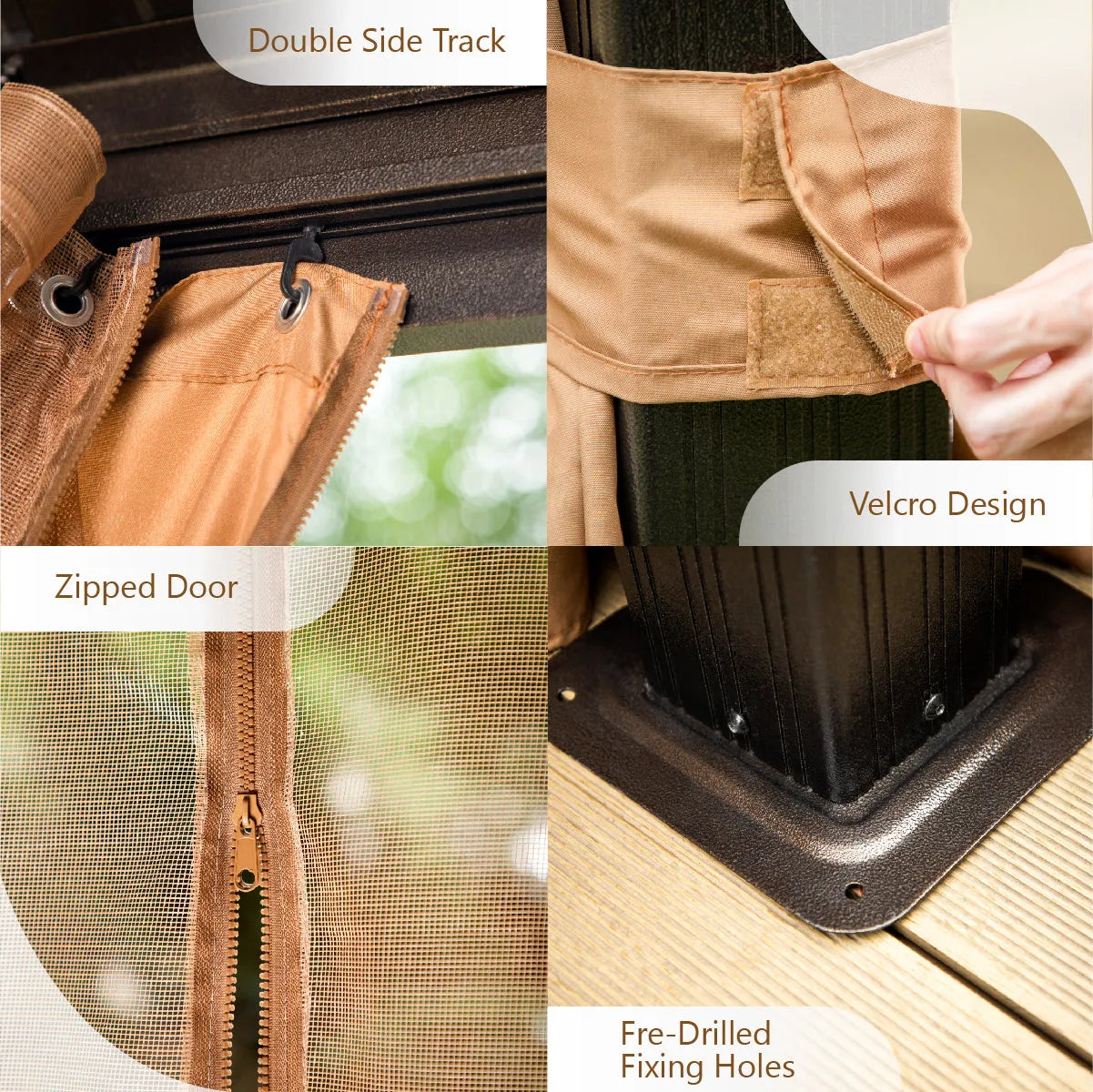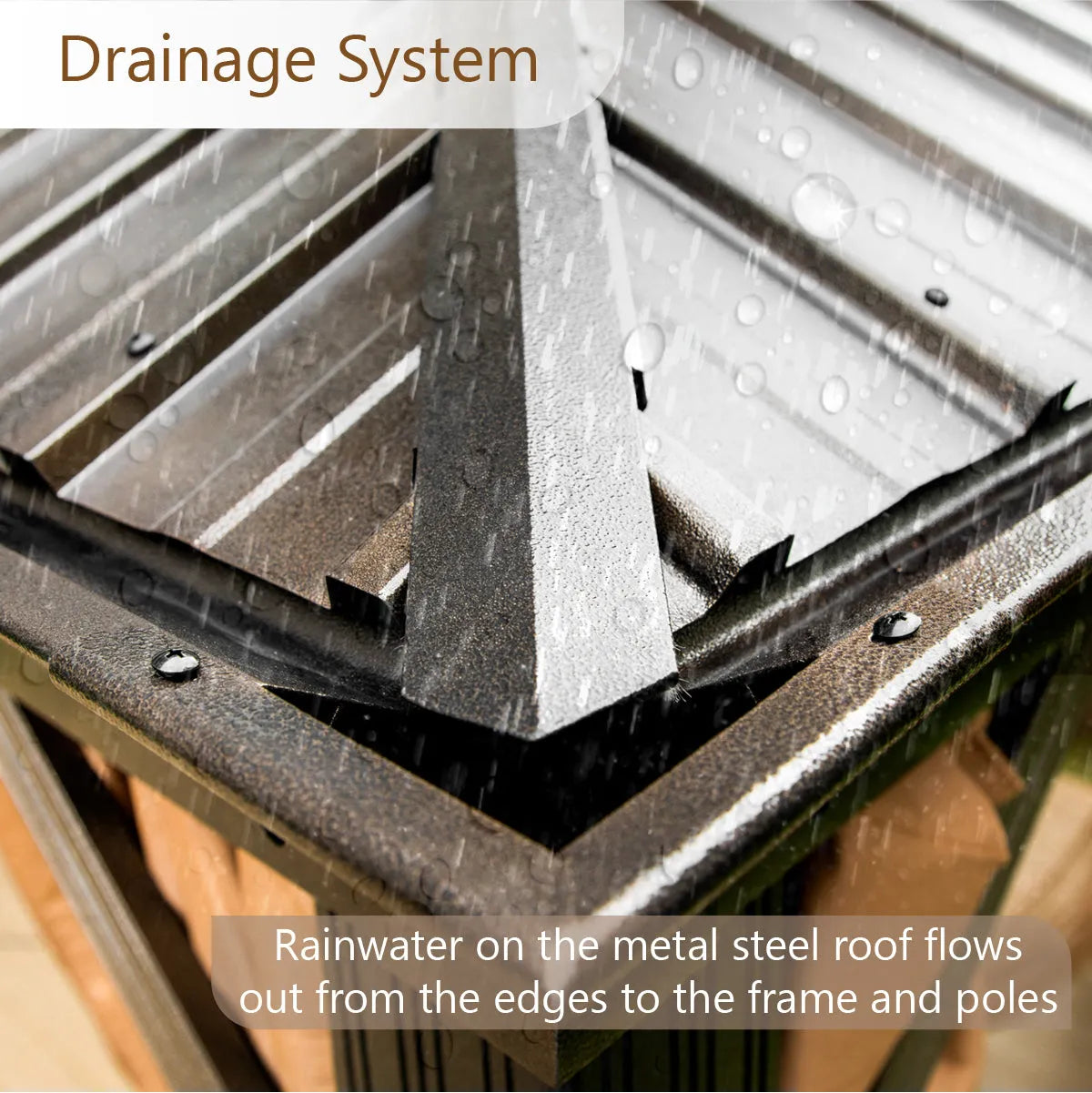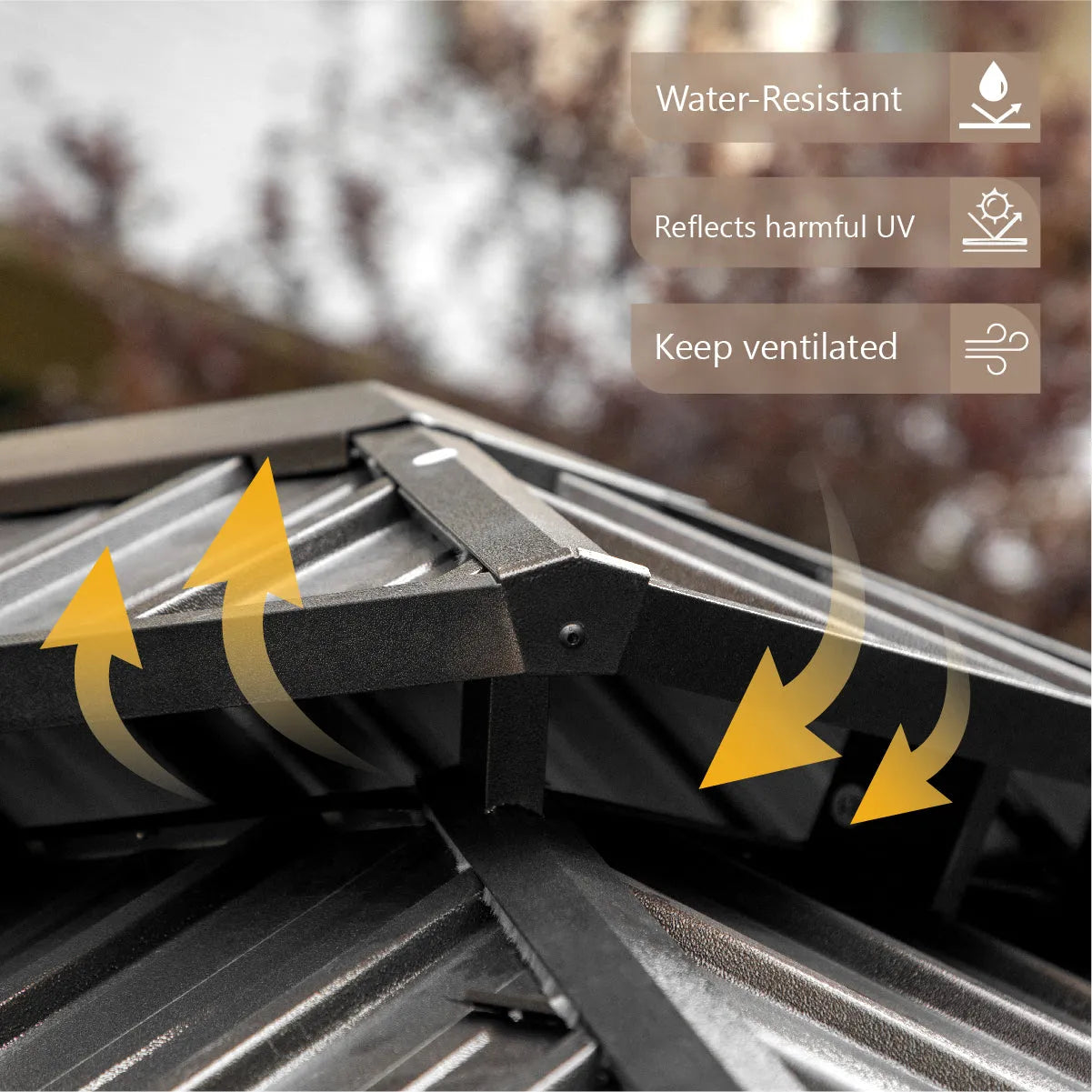 - Ventilated Double-Roof: Features a steel hardtop that prevents fading and prolongs service life, the roof is double top vented for optimum airflow and comfort during periods of strong wind. The middle of roof has two hooks that can be hung with electric lights or fans to boost your pleasant outdoor time.