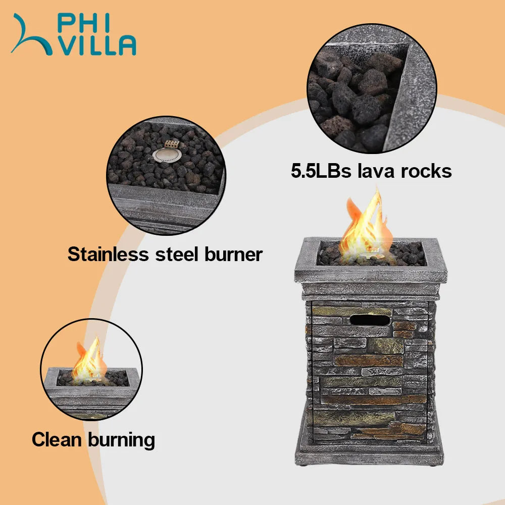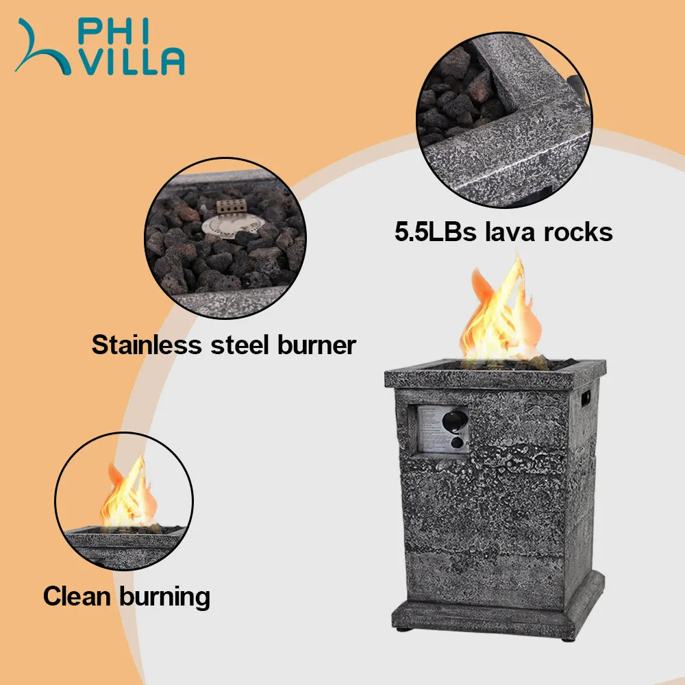 18 Inch 30,000BTU Outdoor Square Terrafab Gas Fire Pit With Waterproof Cover