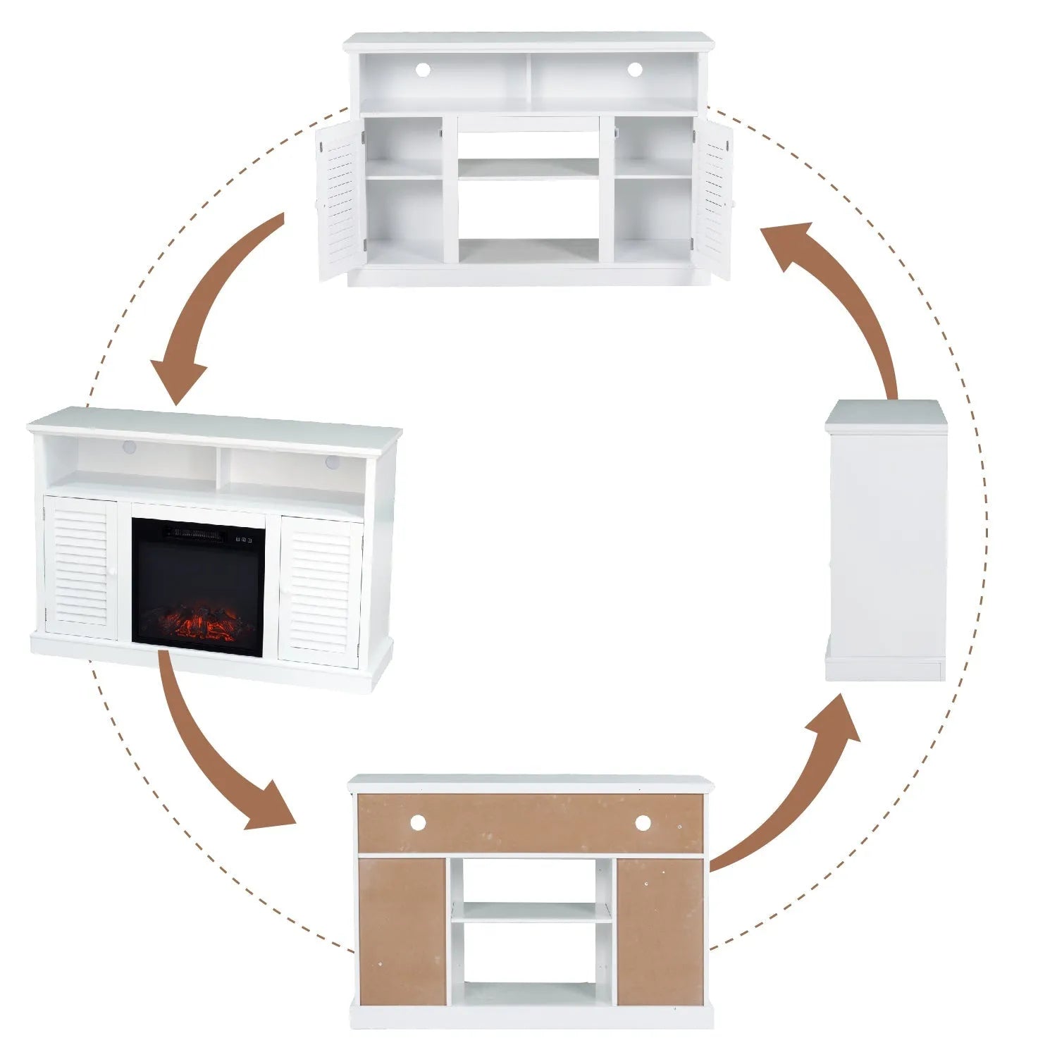 47" 1400W Electric Fireplace TV Stand Heater with Built-In Bookshelves and Cupboards - White