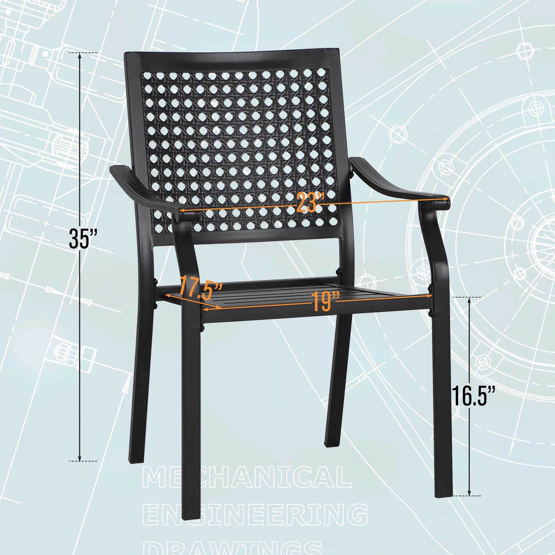 Outdoor Fixed Steel Dining Chairs with Bullseye Flower Pattern - Set of 2