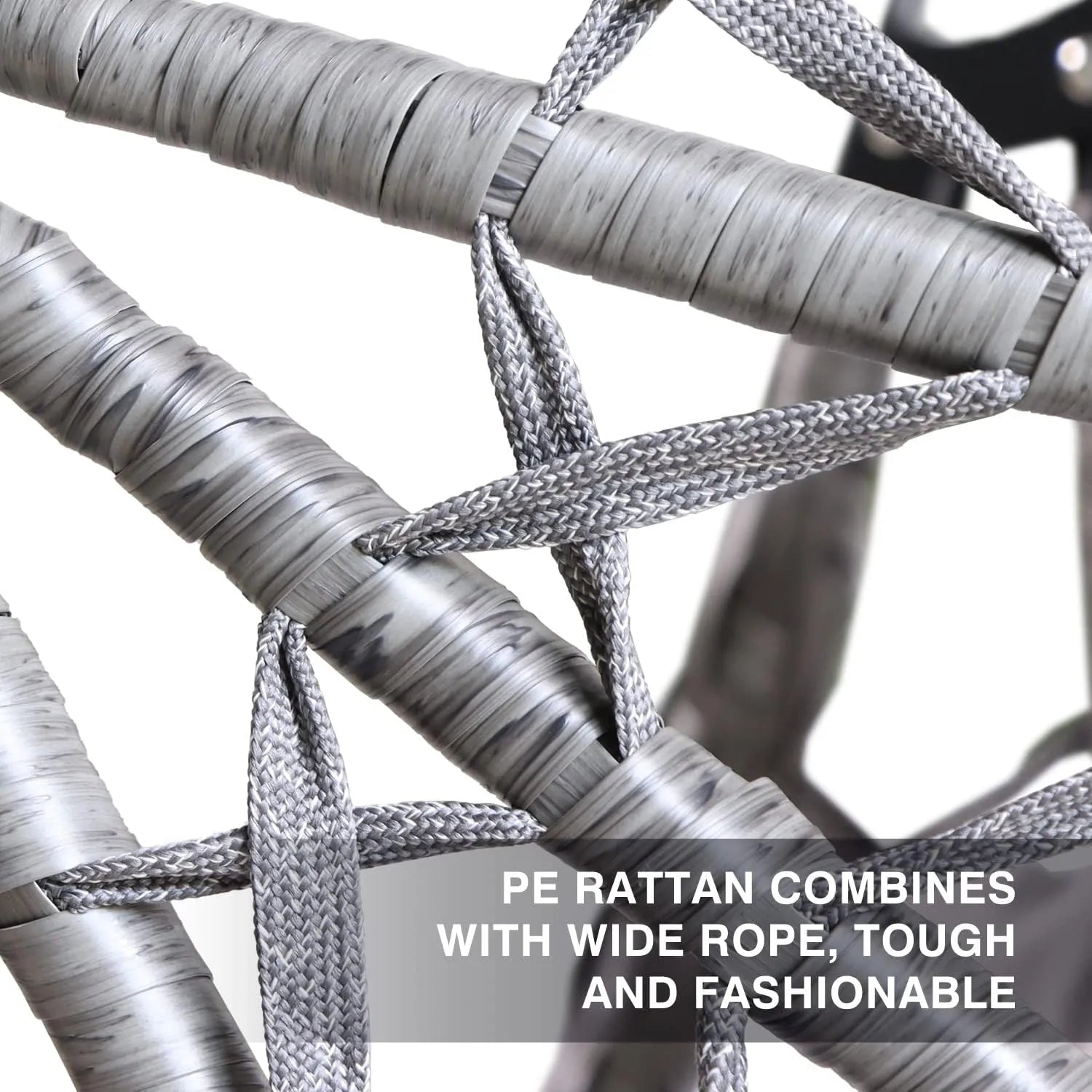 PRIVATE GARDEN Large Hanging Egg Chair with Stand Upgraded Wicker Egg Swing Chair Outdoor Indoor PE Rattan Hanging Chair with Grey Comfort Cushion Heavy Duty C-Stand