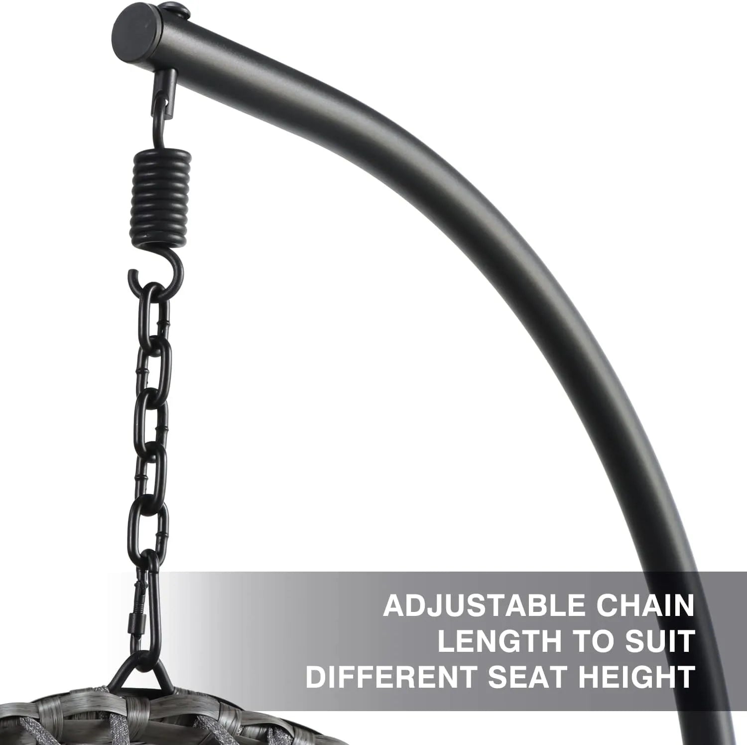 - [Egg Chair with Large Space] The egg shape of hanging chair makes the middle spacious, so you don't feel crowded. High quality quick-drying cushion with armrest gives you a comfortable sitting with enough support. Tip: You can adjust the chain length of the swing egg chair to suit your desired sitting height.