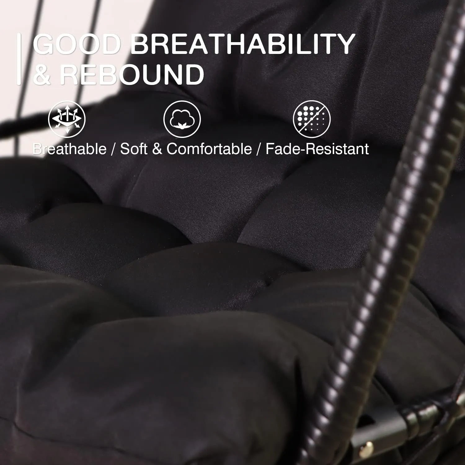 - [Sturdy & Durable Hanging Chair] Egg swing chair is wrapped in high quality rattan wicker on a sturdy steel frame, the strong metal tube C stand with anti-rust powder coating on the surface can bear 330 pounds. The 4 metal feet evenly distribute the weight so that it won't roll over and ensure your safety.