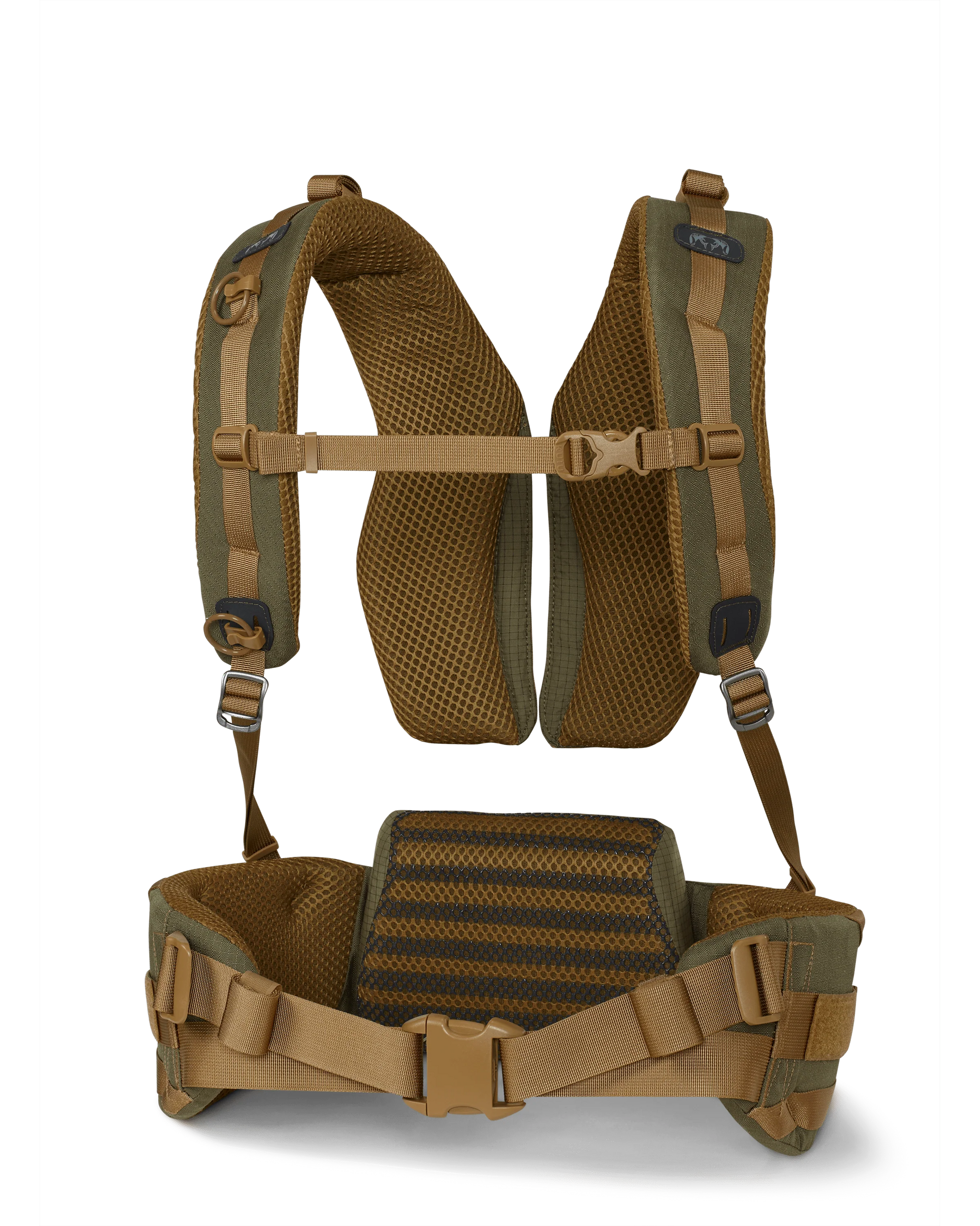 - Webbing loop locations for gun and bow holder attachment