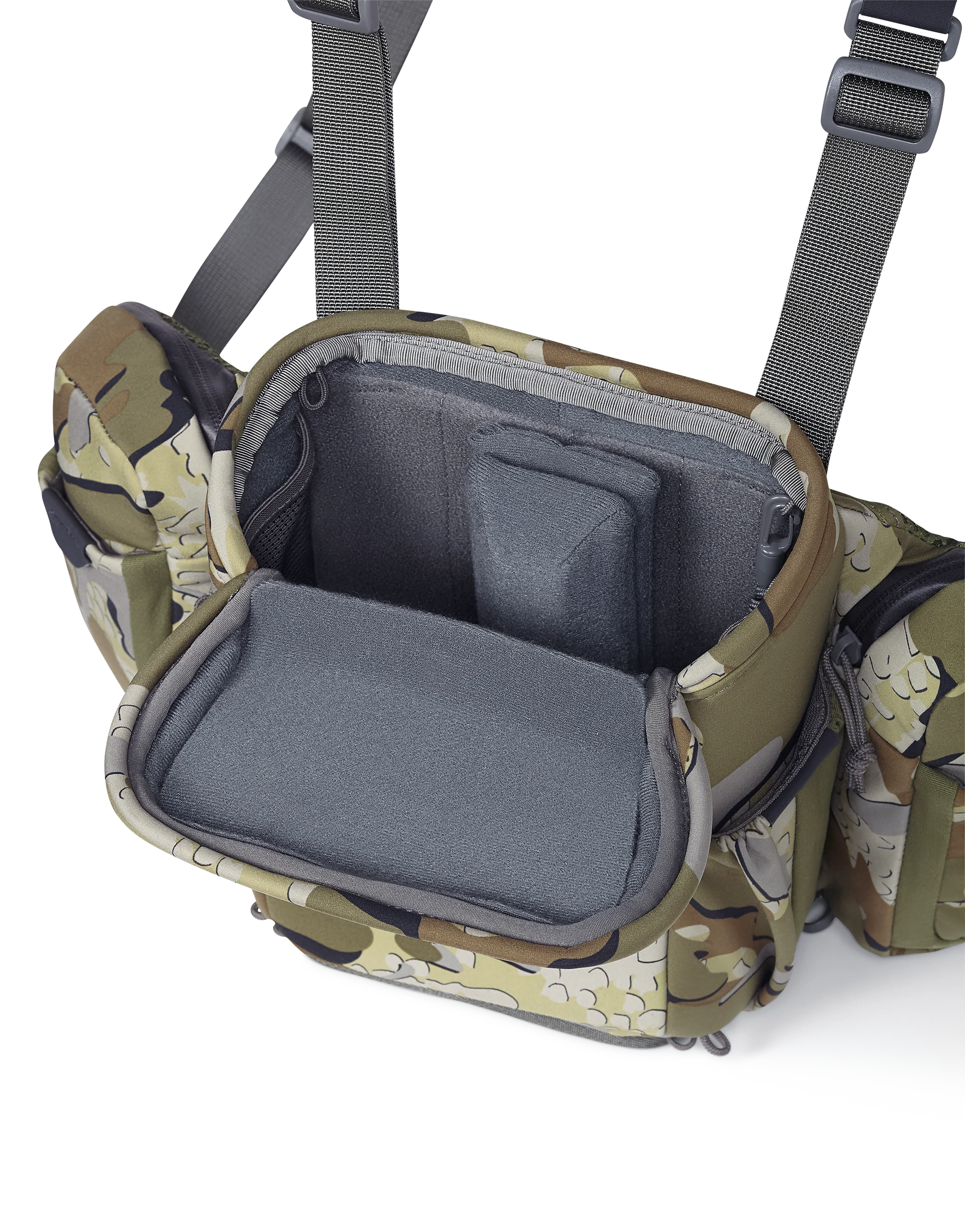 Built for the most technically demanding hunts, the PRO Chest Pack does it all while protecting your binoculars and electronics from water, dust, and debris. With a combination of integrated pocketing and an innovative modular accessory connection system, this full-featured chest rig keeps your binoculars, gear, and accessories organized and close to the chest.