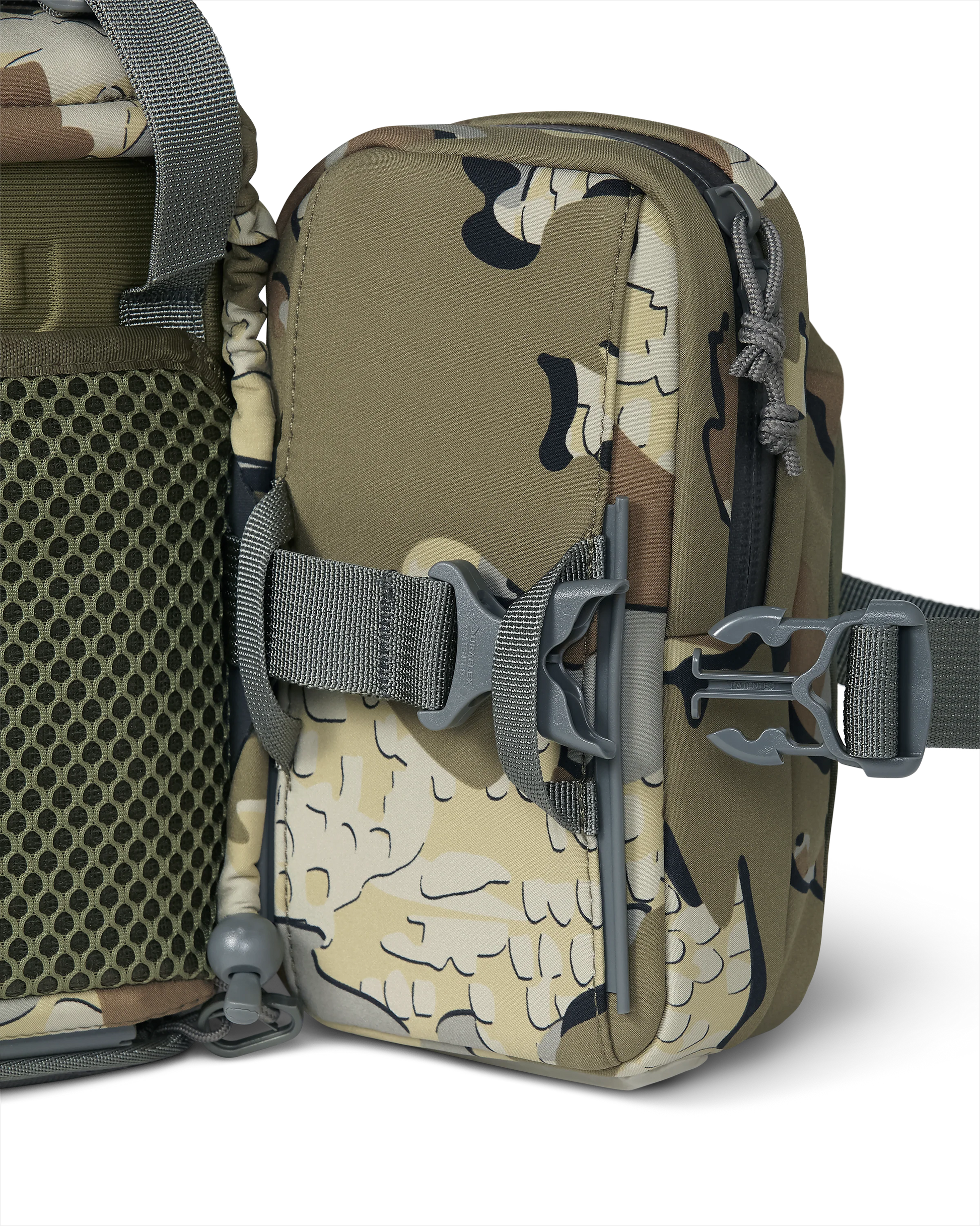 Built as a companion to your PRO G3 Bino Harness or used as a standalone phone case on a belt, the PRO G3 Phone Holder is the ideal storage solution for your phone and digiscoping accessories. Made from the same premium materials as our PRO G3 Bino Harness, the fabric is waterproof, quiet, and fleece lined—providing essential protection from the elements.