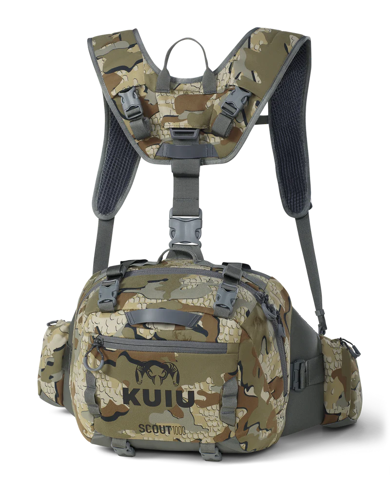 The Scout 1000 waist pack (1000 cu. in. / 16L) is crafted with a minimalist design for hunters who demand stealth and efficiency in the stand or blind. Built to carry a full day’s essentials—calls, food, and a 3L water reservoir—it features dedicated internal pockets for seamless organization and external compression straps to secure extra layers, climbing sticks, and other treestand accessories.
