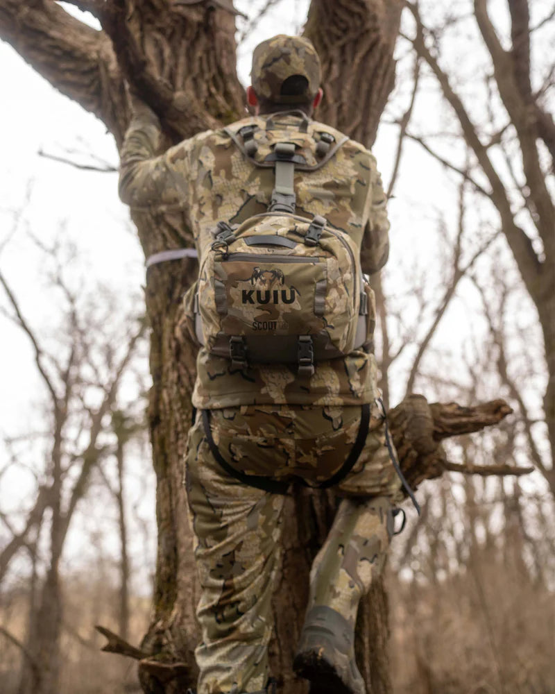 An adjustable tree connection strap lets you hang the pack silently within reach, keeping your stand clutter-free. Weighing just 2.6 lbs with a DWR water-repellent finish, the Scout keeps you prepared and focused, from pre-dawn setup to the perfect shot.Features