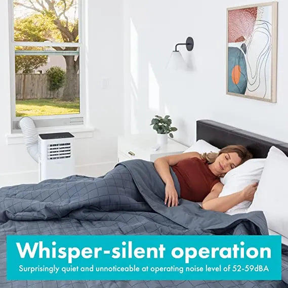Features: Metal Control Box to Prevent from Fire and Exploding Rotary Compressor Universal Castors for Moving Freely Wifi function Lightweight & Portable A/C Unit Compact Freestanding Room Air Conditioner (3) Operation Modes: AC Cooling / Dehumidifier / Fan Hassle-Free, Quick Setup Cooling Simple Electric Plug-in Operation Convenient Wide-Area Climate Control Room AC Coverage Push Button Control Panel with LED Display Time, Temperature & Fan Speed Adjustment Settings Includes Universal Window Mount AC Exhaust Kit Removable & Washable Air Filter Screen Modern Style, Sleek Body Housing Energy Efficient: Low Power Consumption Low Noise Level Motor Rolling Wheels for Easy Portability Used for Home, Office, School & Business Rooms What’s in the Box: AC Unit Exhaust Hose Window Installation Plate Remote Control Technical Specs: Power Supply: 115V/60Hz Rated Power: 800W Refrigerant Type: R410a Cooling capacity (ASHRAE): 8,000 Btu/h Cooling capacity (DOE): 5,000 Btu/h Coverage Area: Cools Rooms up to 300 Square Feet Air Flow: 360 Cubic Meters / Hour Operating Modes: Cool / Fan / Dry (Dehumidifier) Moisture Removal / Dehumidifier: 1.1 Liters / Hour Operating Noise Level: 55 dBA Fan Speed Settings: Two Level, Low/High Temperature Unit Selectable: °C / °F (Celsius / Fahrenheit) Adjustable Timer Settings: Up to 24 Hours Construction Material: High Impact Polystyrene (HIPS) Battery Operated Remote Control, Requires (2) x ‘AAA’ Batteries, Included Power Cable Length: 4.3’ ft. Product Dimension (L x W x H): 27.6” x 12.8” x 11.6” -inches Sold as: 1 Weight: 57 lbs.