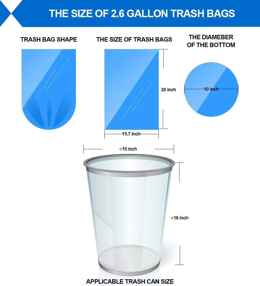 - 【100% Customer Satisfaction】 If you're not satisfied with our small trash bags, please feel free to contact us. We won't just say try our 2.6 gallon garbage bags and love them, we're truly dedicated to your satisfaction.