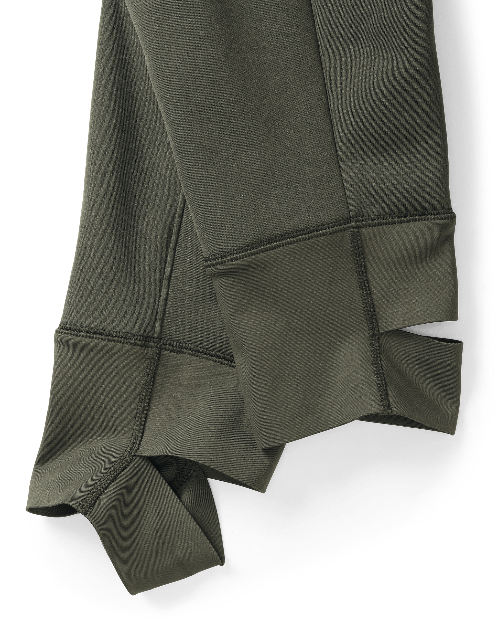 Features include tapered legs, gusseted crotch, hip vents, and high-stretch layered stirrup cuffs. The layered stirrup cuffs can be pulled down over your heel to keep the pant from riding up under waders or left alone as fitted cuffs like a jogger pant.