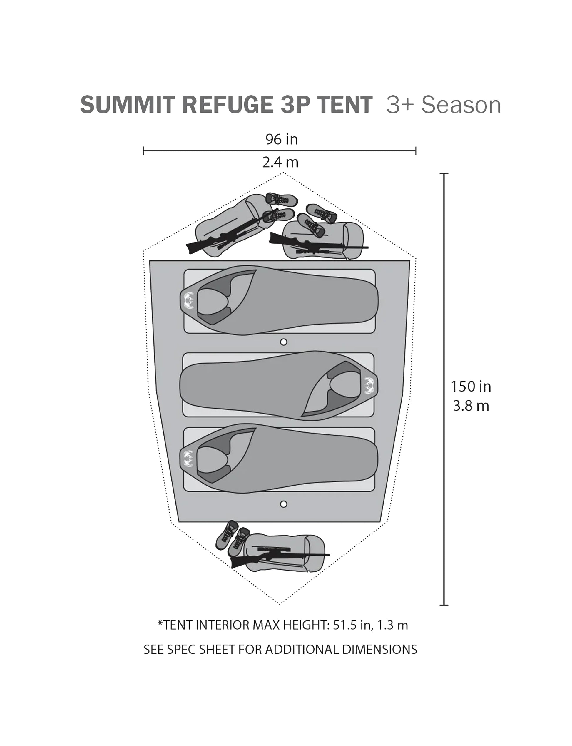 - Dual zippered entry at head and foot with large vestibules for gear storage.