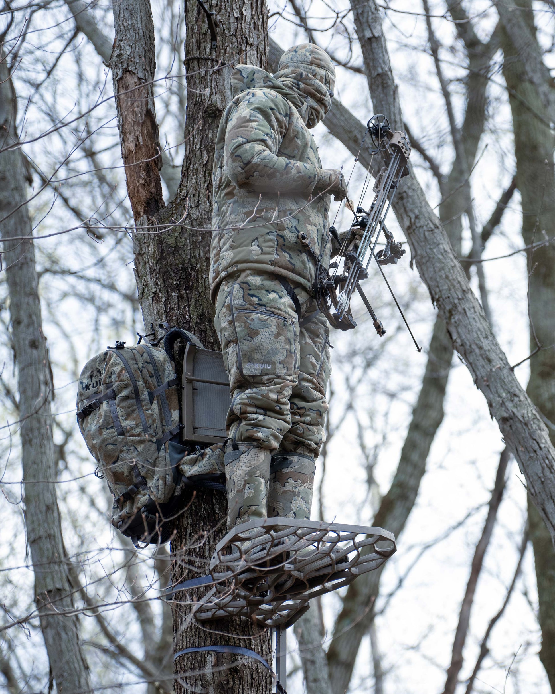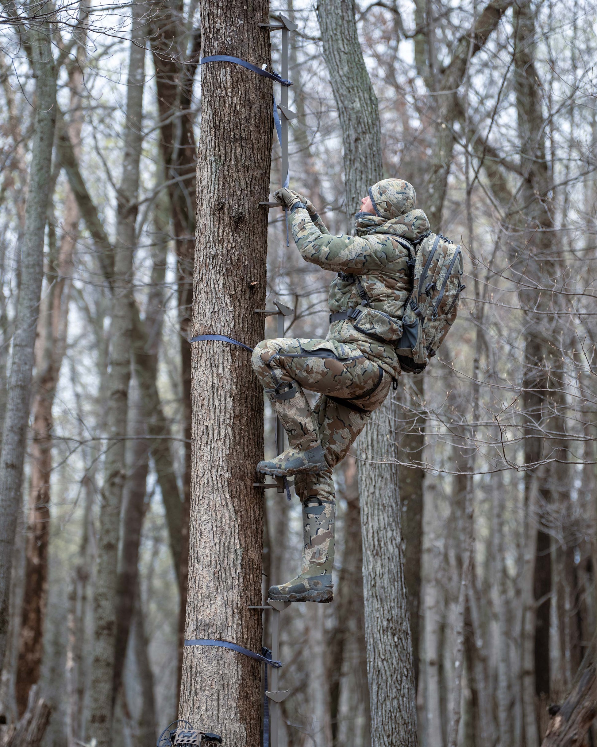 We leverage our 3DeFX+ synthetic insulation for a streamlined fit in the lower leg, whether worn over or tucked into your boots. The seat of the bib utilizes layers of both down and 3DeFX+ for the perfect amount of warmth, and compression resistance needed for sitting on a frozen treestand.