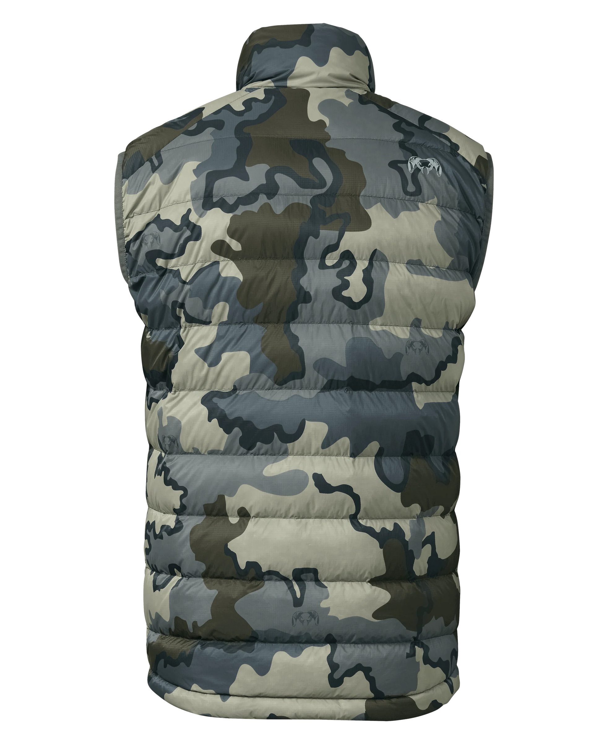 The Super Down LT is sized with a mid-layer fit, so it comfortably layers over a base layer and mid-layer fleece, yet it’s trim enough to layer under our rain gear in the same size. The vest features a new two-stage packability system. It self-stows in the right-hand pocket, with enough room to also stow the Super Down LT Pant. In this configuration it doubles as a comfortable camp pillow. If pack space is limited, a secondary cinch can be used to compress the vest to half the stowed size.