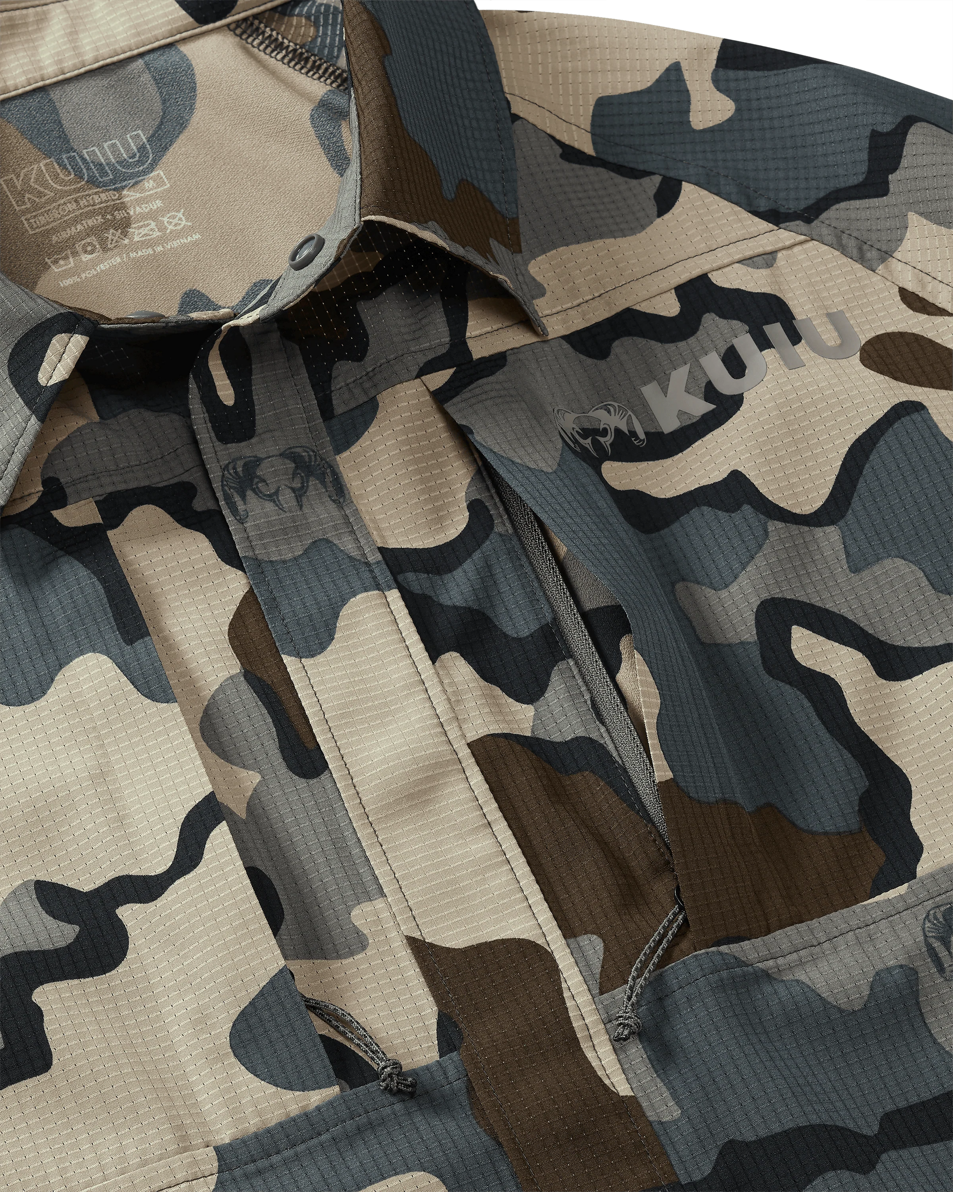 Open MenuClose MenuThis hot-weather snap shirt is spec’d with two all-new fabrics for tailored performance. Across the chest, upper back, and tops of arms, AirMatrix Technology woven fabric provides maximum breathability with micro-openings. This new fabric is soft, comfortable, and will not chafe while worn next to skin. Across the back and underarm, a durable ultralight knit fabric provides equal comfort. Both fabrics wick sweat and dry quickly to keep you feeling dry.